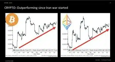“Since the start of the Iran war, crypto prices have outperformed and Ethereum has outperformed the S&P 500 by 2,450bp. This is a meaningful outperformance in a mere two weeks,” said Thomas “Tom” Lee, Chairman of Bitmine.