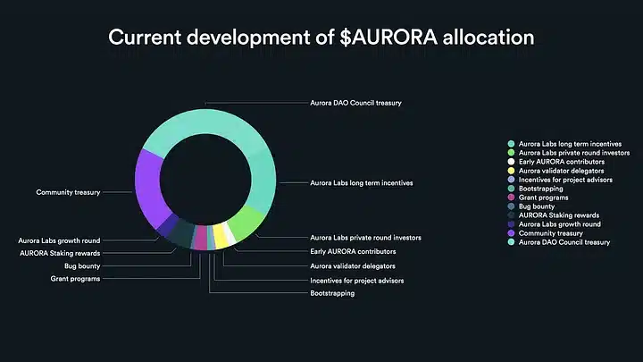 The AURORA token is a governance token that ensures the proper protocol upgrades. Aurora is governed by AuroraDAO, which includes representatives from various blockchain ecosystems and sectors within the blockchain industry.
