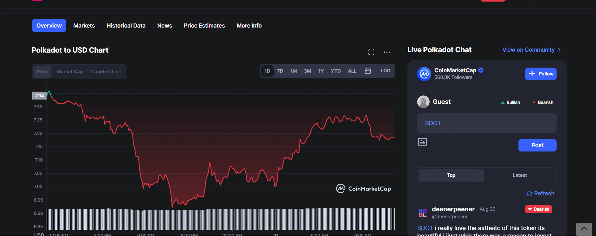 On November 4th, 2021, it reached its all-time high of $54. At the time of writing this post, Polkadot is trading at $7 and has a market cap of $7 billion.